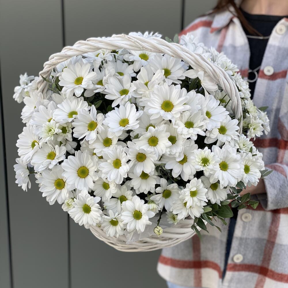 Корзина из белой ромашковой хризантемы