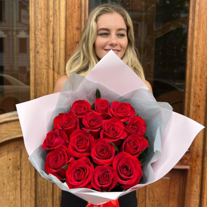 15 Красных Премиум Роз 60см