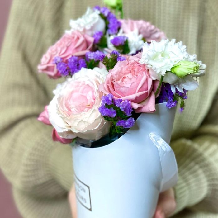 “В твоих глазах”: нежная шляпная коробка с французскими розами