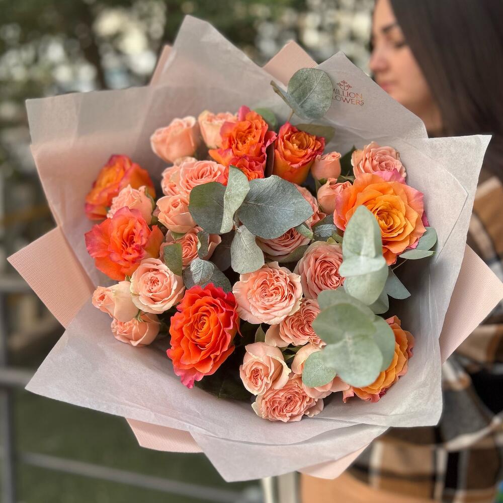 Гвоздики, Кустовые розы, Лизиантусы, Пионовидные розы, Розы
