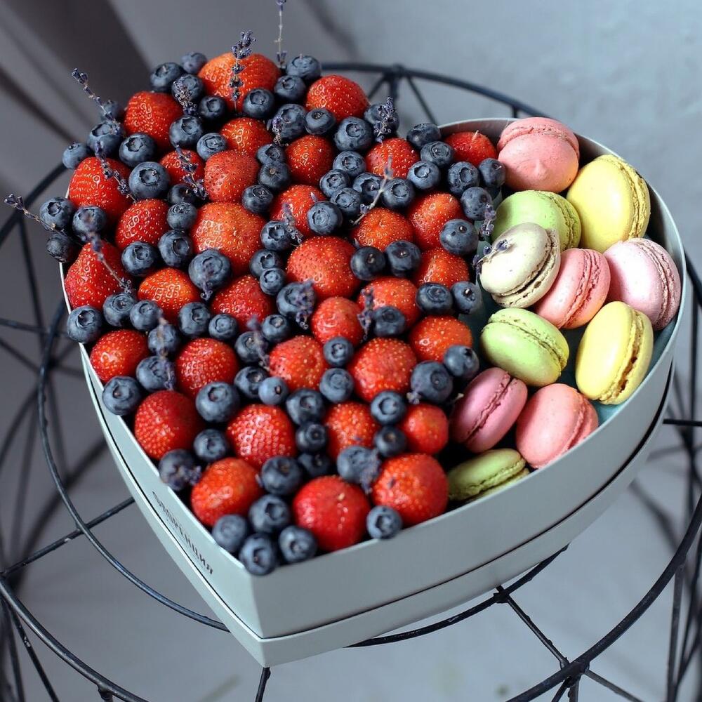 Ароматное ягодное сердце с добавлением французских,миндальных пирожных.Мы создаем сочные и аппетитные букеты из ягод, их можно подарить любимым женам и подругам,родственникам,коллегам по работе по любому поводу Каждый букет — это маленькое произведение искусства, созданное специально для вас.Любим, то что делаем и относимся с душой к каждому клиенту❤️ Бережно упакуем ваш букет перед доставкой